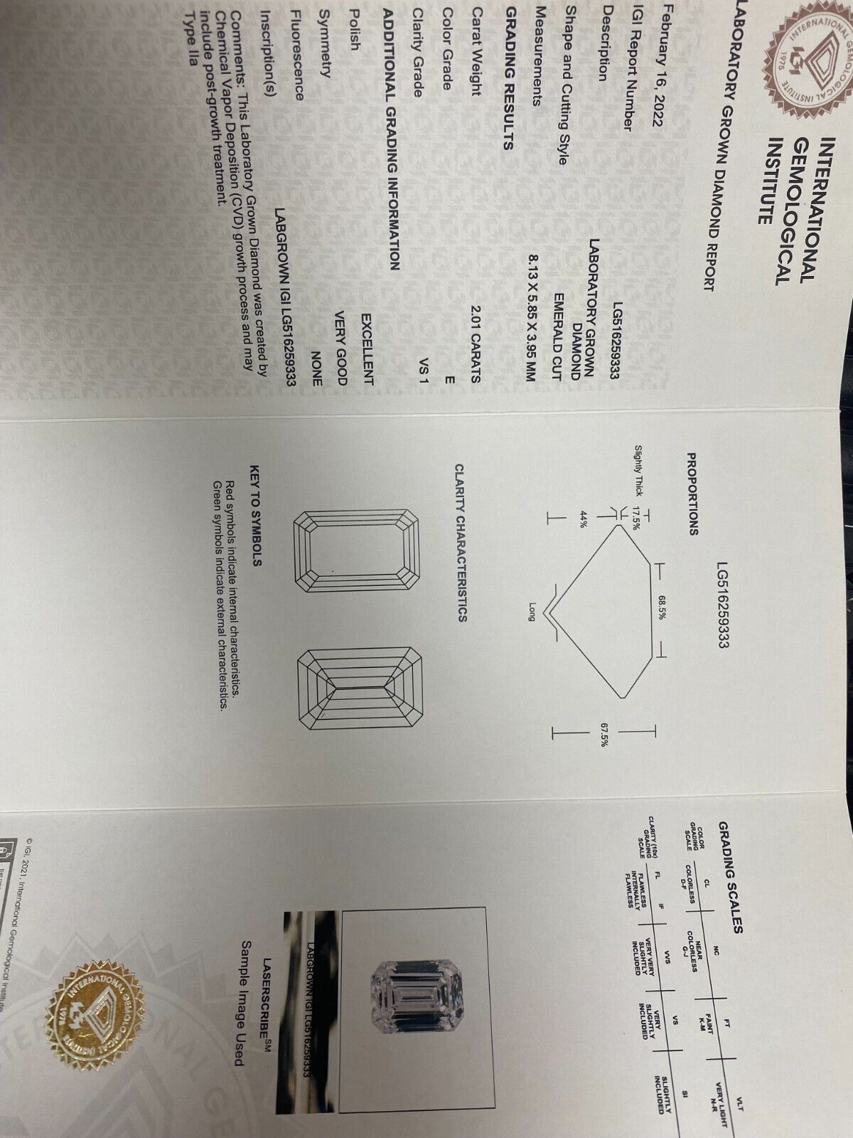 Lab-Grown 2.01ct E VS1 Emerald Cut Diamond Engagement Ring in 14k CVD White Gold IGI CERTIFIED RING DETAILSTotal Carat Weight: 2.01...