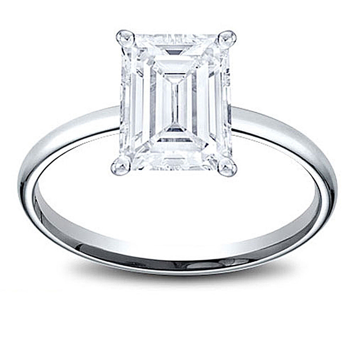 14K Gold Lab Grown 2.01ct Emerald Cut Diamond Solitaire Engagement Ring E-VS1