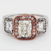 Elongated Cushion Cut Engagement Ring 3.50 TCW 18K White Gold and 18K Rose Gold