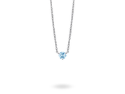 Bringing a fresh blue lab-grown diamond perspective to a traditional solitaire stone pendant. Set in 14k white gold, the three...