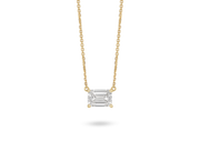Handcrafted in 14k gold, a 1 carat emerald cut stone is held in a four prong setting. The chain is...