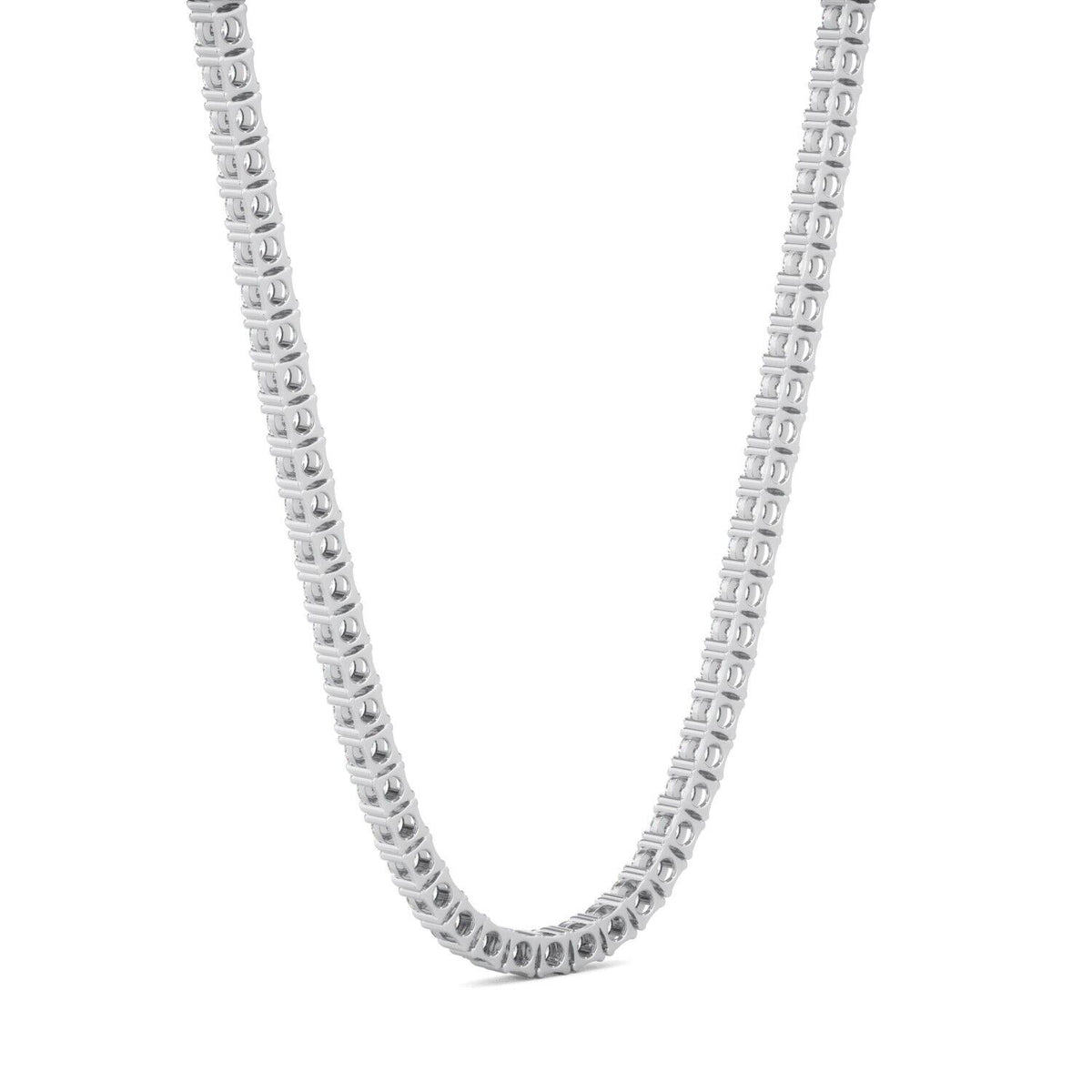 Here we have a beautiful real diamond tennis necklace. Crafted using the finest lab grown diamonds and highest purity of 14k white gold. Each diamond is hand set and then hand polished upon completion to insure the ultimate shine and luster of a diamond tennis necklace. Each diamond weighs 0.06ct for a total of 10.50cttw. The diamonds are graded D-E in color and VS1-VS2 in Clarity. Add this timeless and everlasting design to your jewelry collection. You will love to wear this daily as it can be worn alone or with your other jewelry pieces. Great for everyday and for special occasions. Celebrate your love with this gorgeous lab grown diamond tennis necklace. Comes with a certificate as well as a beautiful gift box ready to gift. We strive to satisfy your jewelry needs. Contact us with any questions. Looking forward to being an important part in your jewelry shopping experience.